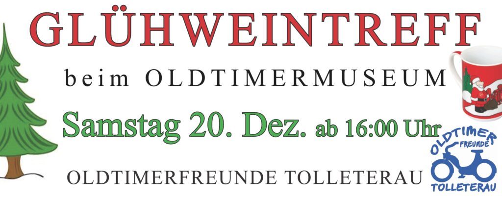 Am Samstag 20 Dezember ab 16Uhr laden wir wieder zum Punschstand beim Oldtimermuseum ein.